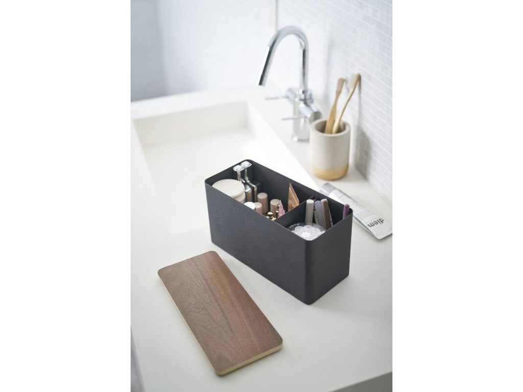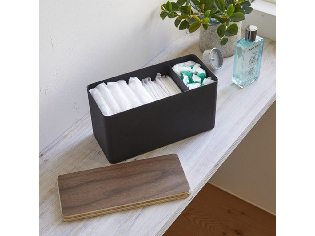 Detailní popis produktu YAMAZAKI Rin 4807 - dóza do koupelny. Kovová dóza s víčkem z překližky.
