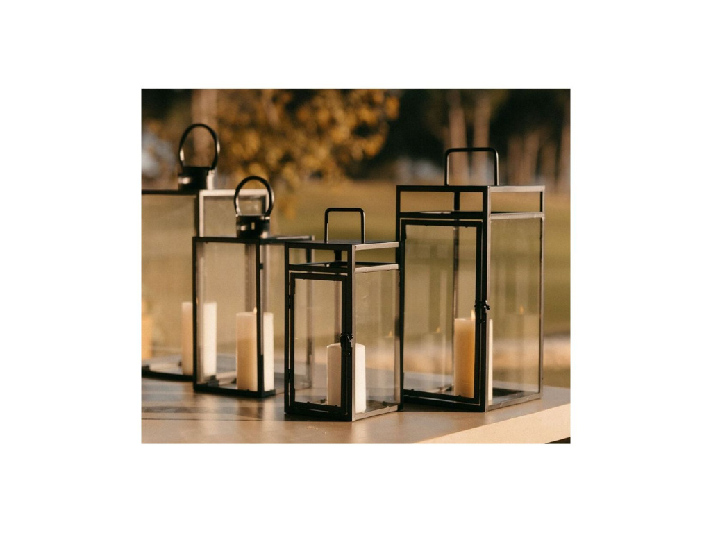 Svícen s černým kovovým rámem a matným povrchem. Na jednu stranu lze umístit velkou svíčku. Neobsahuje sklenici na umístění svíčky. V horní části se nachází čtvercové držadlo pro pohodlné přenášení svícnu.