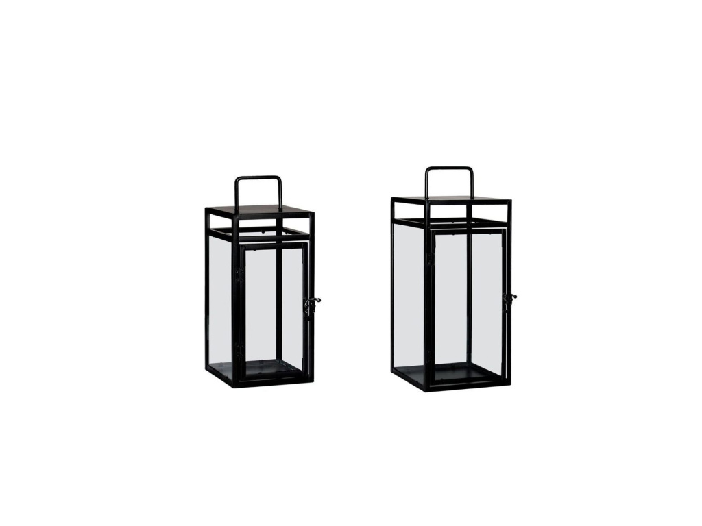 Industriální kovová lucerna se čtvercovou rukojetí Andrea House, 35 cm | černá