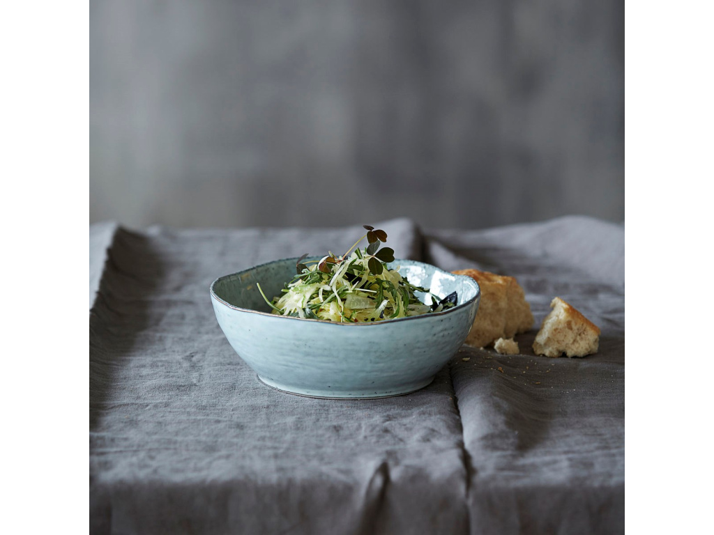 Mísa je vyrobená z kameniny s pěkným rustikálním povrchem. Surová glazura je udržována v modrých a šedých tónech, což vašemu stolu dodává teplo a osobní výraz.