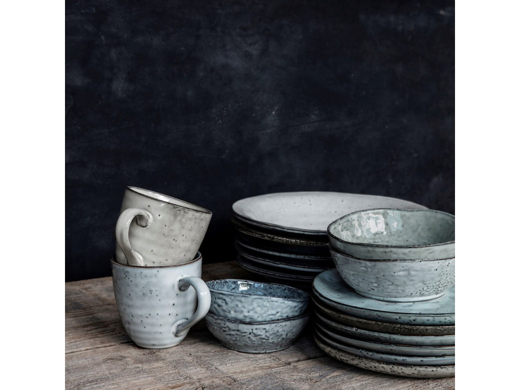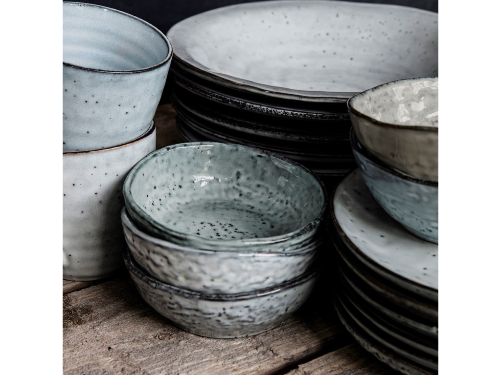Miska je vyrobená z kameniny s pěkným rustikálním povrchem. Surová glazura je udržována v modrých a šedých tónech, což vašemu stolu dodává teplo a osobní výraz.