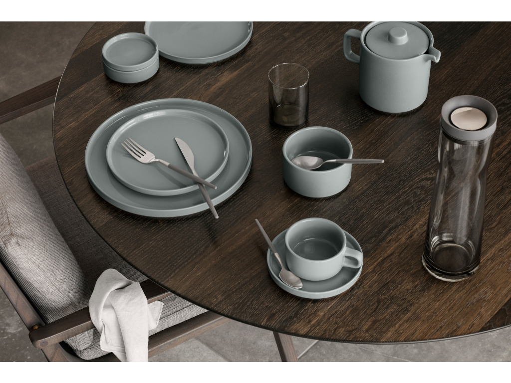Nerezová ocel je pro Blomus důležitým materiálem od svého založení a nadále hraje zásadní roli v jejích úspěchu. V dnešní době sortiment značky Blomus rozrostl na širokou škálu předmětů ve stejně rozmanitém výběru materiálů, jako je kamenina, uzený korek, len, beton a dřevo; stále však cení jedinečné vlastností nerezové oceli - ve společnosti jiných materiálů.