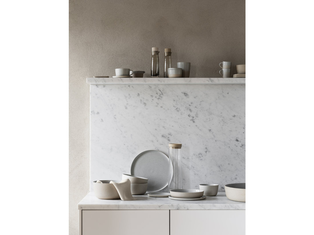 Nerezová ocel je pro Blomus důležitým materiálem od svého založení a nadále hraje zásadní roli v jejích úspěchu. V dnešní době sortiment značky Blomus rozrostl na širokou škálu předmětů ve stejně rozmanitém výběru materiálů, jako je kamenina, uzený korek, len, beton a dřevo; stále však cení jedinečné vlastností nerezové oceli - ve společnosti jiných materiálů.