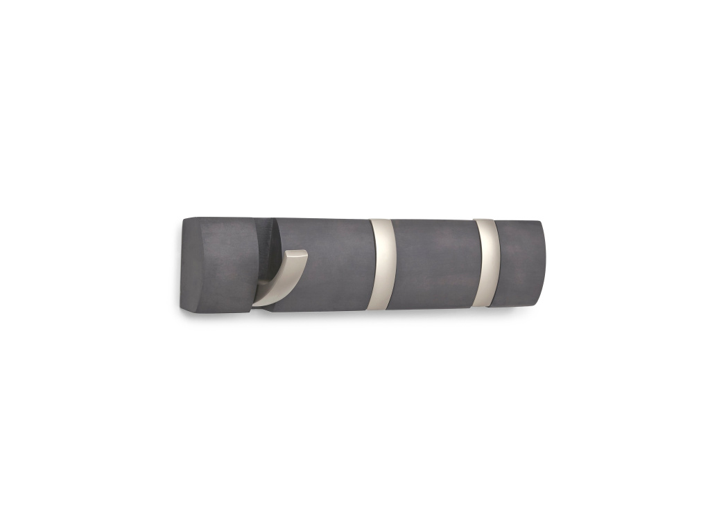 Dřevěný věšák na zeď Umbra Flip 3 s kovovými háčky | šedohnědý