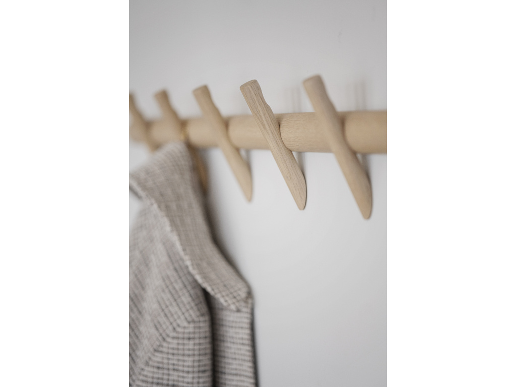 Věšák Hillmond o šířce 65 cm přináší do vašeho domova jednoduchou eleganci a funkčnost. Vyrobený z masivního světlého dubu, perfektně zapadne do moderních a skandinávských interiérů.