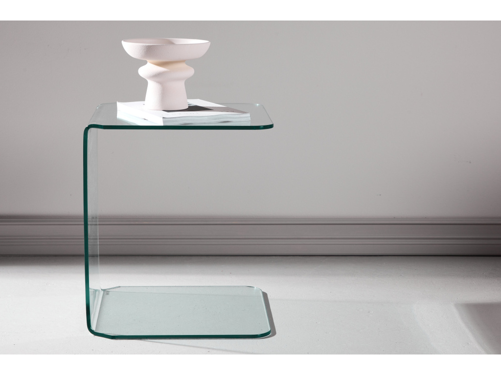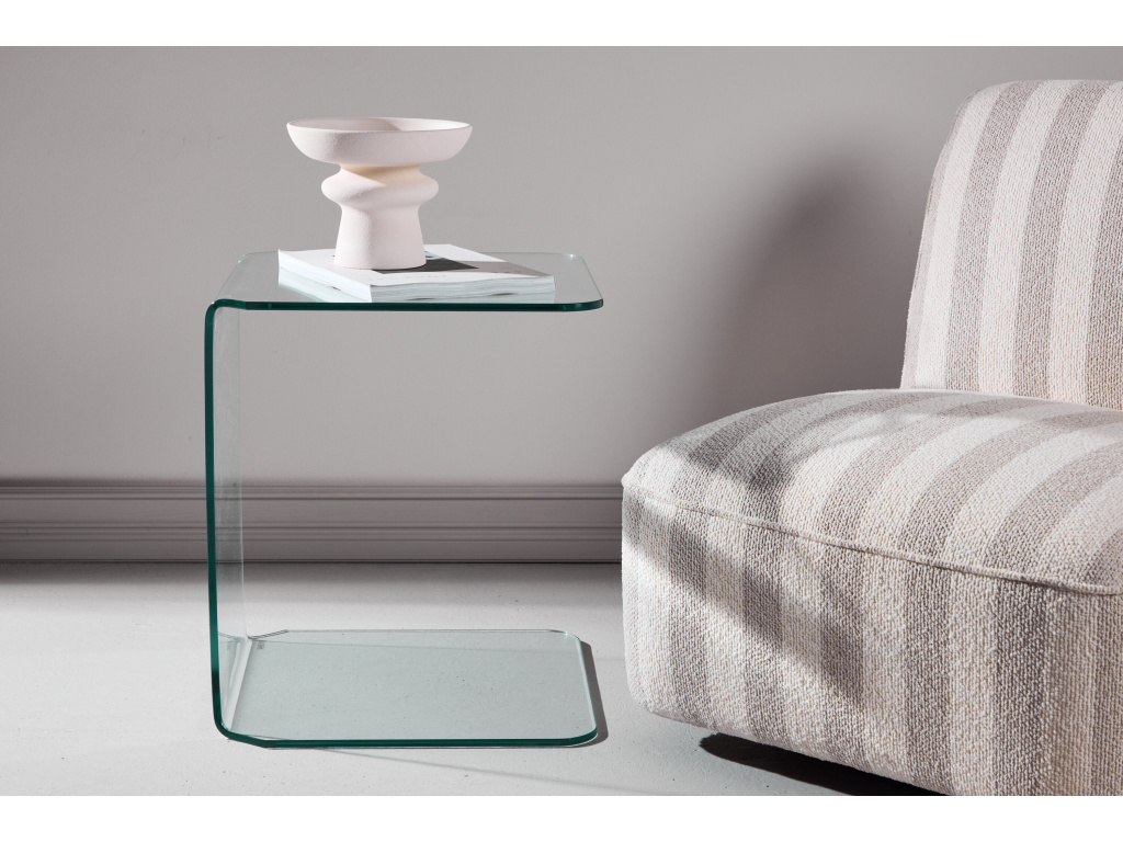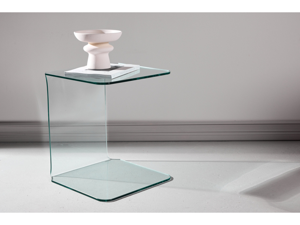 Objevte Odkládací skleněný stolek TELEMARK | Jasný, designový kousek, který spojuje styl a funkčnost pro váš interiér.