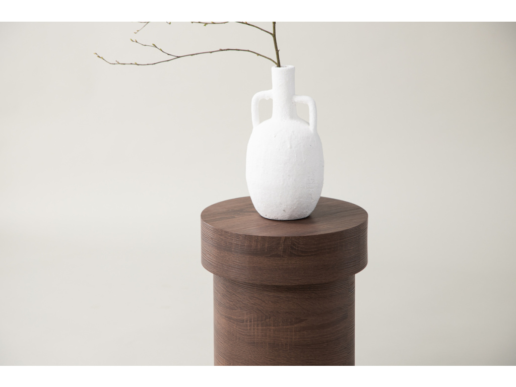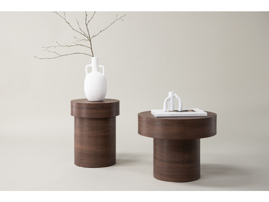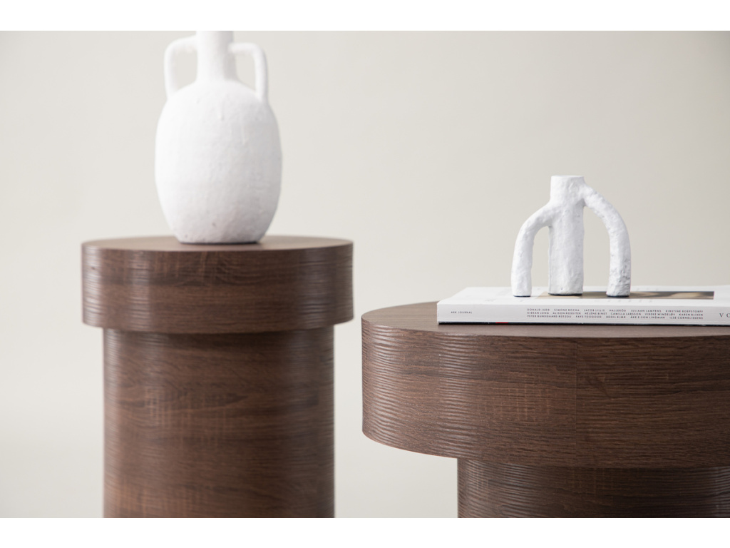 S průměrem 35 cm a výškou 45 cm se tento odkládací stolek perfektně hodí k vašemu oblíbenému křeslu nebo pohovce a poskytuje praktické a stylové úložné řešení.