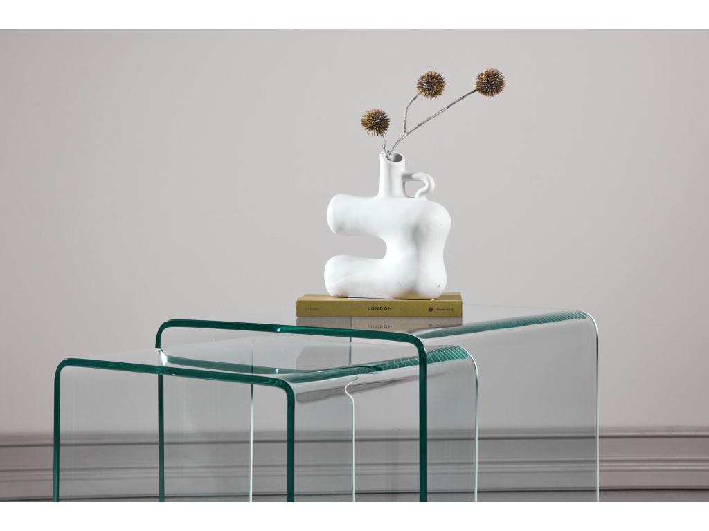 Objevte Sada skleněných odkládacích stolků TELEMARK | Jasný, designový kousek, který spojuje styl a funkčnost pro váš interiér.