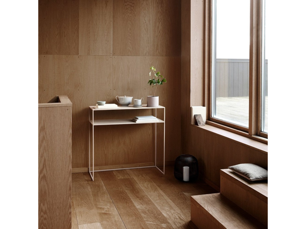 Příborník / odkládací stolek ke zdi FERA s čistými, jednoduchými liniemi dokazuje, jak udržet pořádek esteticky příjemným způsobem.