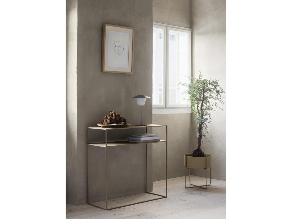 Odkládací stolek FERA je vyroben z robustní, béžové práškované oceli s matným, mírně zdrsněným povrchem.