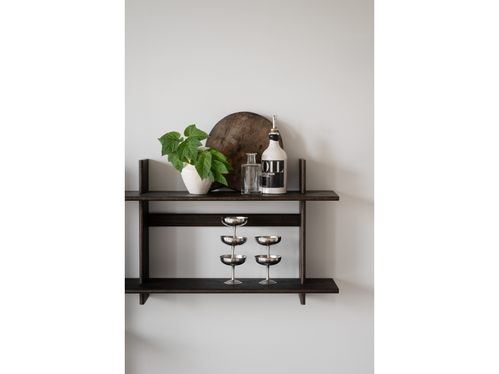 Tato elegantní nástěnná police se dvěma úrovněmi je víc než jen úložný prostor, je to výrazný detail interiéru, který udává tón místnosti. Díky svému jednoduchému, ale promyšlenému designu z hnědého dubu a dubové dýhy vytváří police teplý a moderní pocit, ideální pro stylově orientované domácnosti. Použijte ji samostatně pro minimalistický vzhled nebo zkombinujte několik kusů a vytvořte ucelenou aranžmá. Jednoduchá police, která spojuje funkčnost s formou a dodává vašemu interiéru skutečný charakter a moderní…