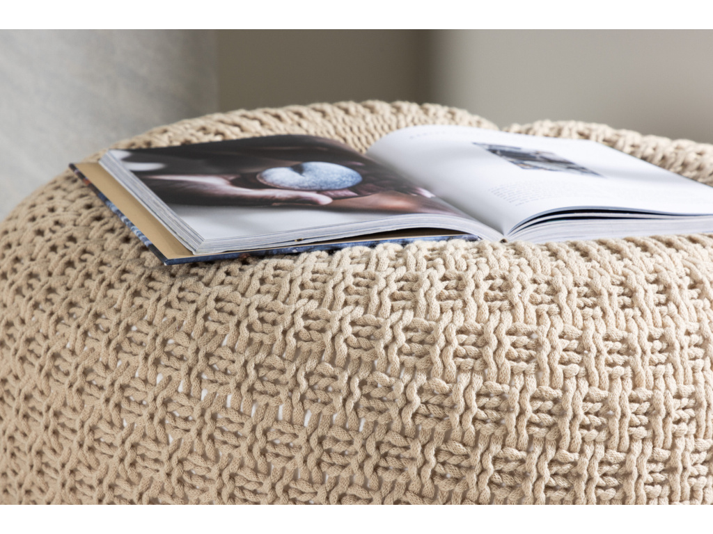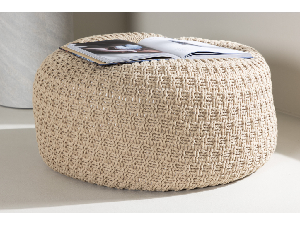 Seznamte se se Samem - perfektní kombinací stylu a pohodlí pro váš domov. Díky jemnému vzoru v teplé béžové barvě je Sam puf, který pozvedne váš interiér. S průměrem 45 cm je ideální pro dodání elegance a funkčnosti každé místnosti. Sam není jen krásným detailem ve vašem domě, ale slouží také jako pohodlný taburet, kde si můžete odpočinout po dlouhém dni. Jeho měkký povrch vybízí k relaxaci a dělá z něj oblíbenou pohovku pro mladé i staré. Dopřejte svému domovu extra nádech pohodlí a stylu s pufem Sam.