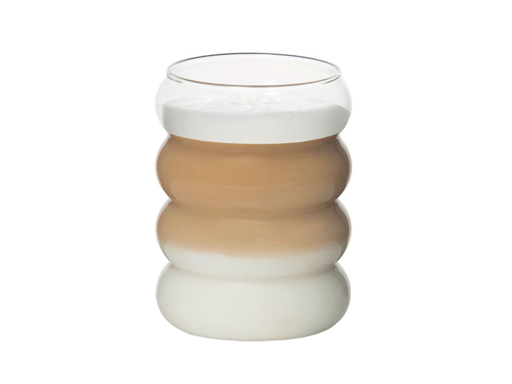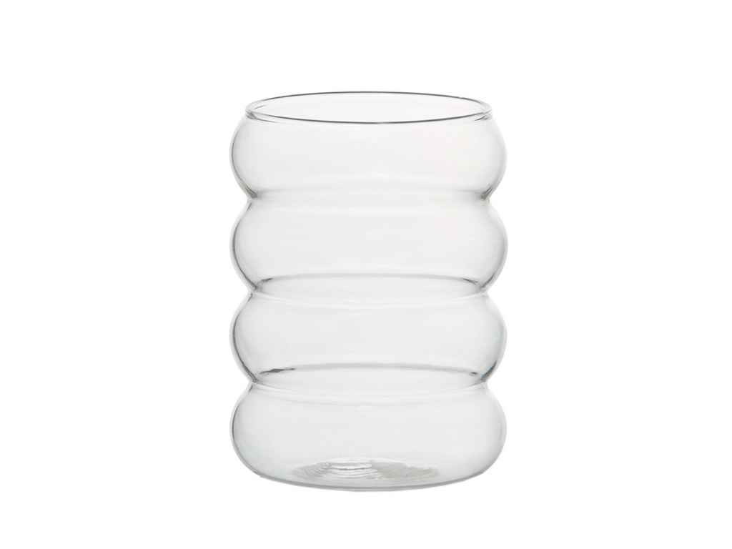 Sada 4 sklenic z čirého skla je originálním doplňkem vašeho stolování, protože jejich zaoblené tvary připomínají čtyři naskládané koblihy.