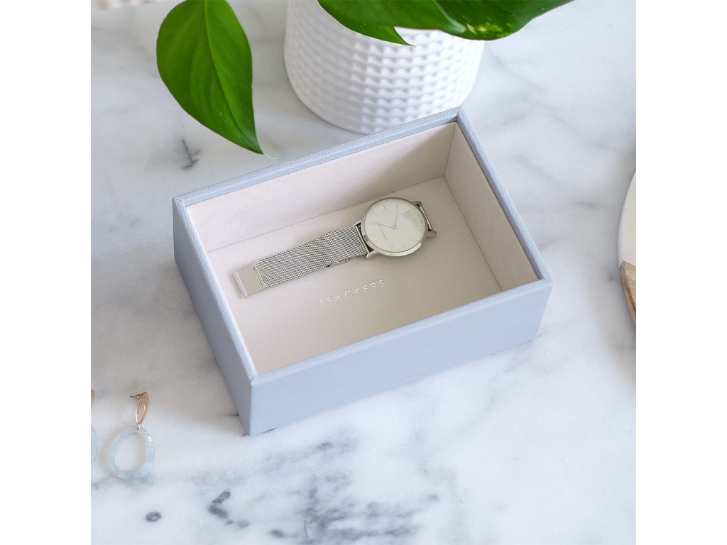 Box na šperky Stackers Mini Open Layer je vyroben z měkké veganské kůže s kvalitní bavlněnou podšívkou a je ideální pro uložení náramků a hodinek.
