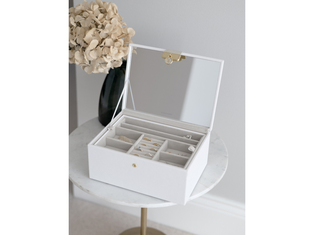 Luxusní šperkovnice se zrcadlem Stackers Luxury Classic White | bílá