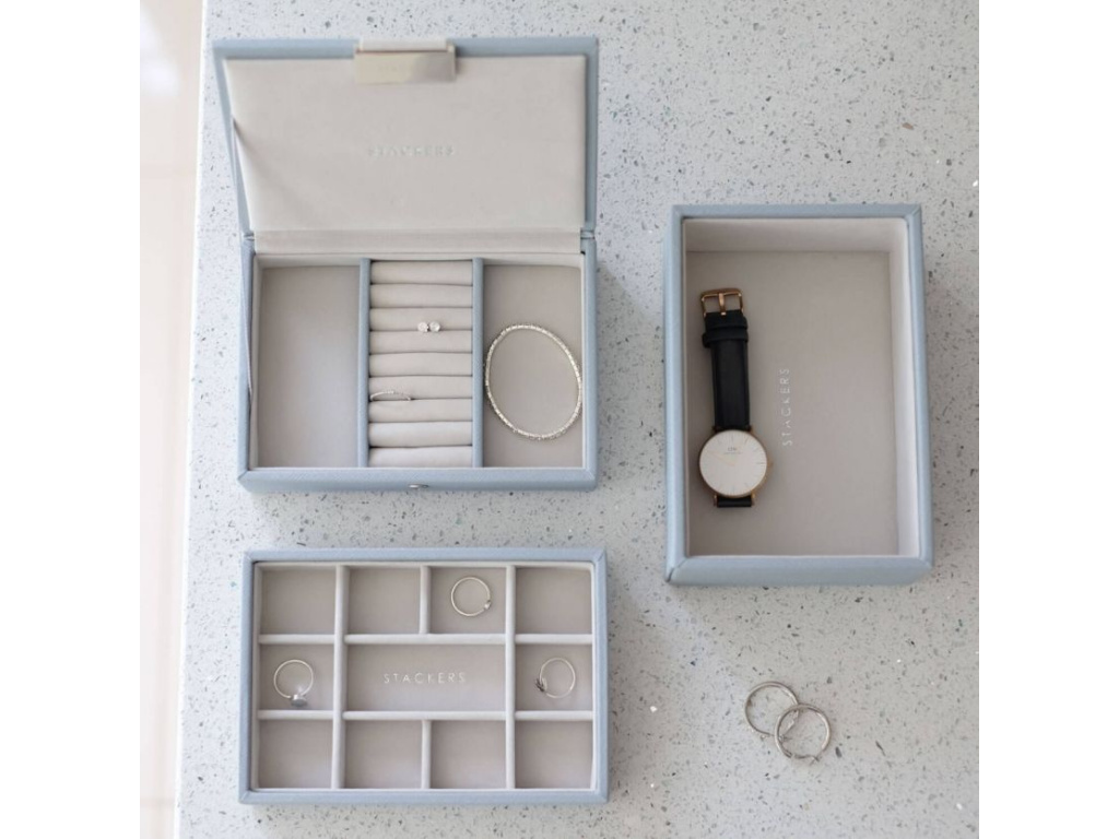 TIP: Šperkovnice Stackers je k dispozici v tyrkysové, růžové, šedobéžové, tmavě modré, bílé, šedé, zelené, levandulové, kávové a modrošedé barvě.