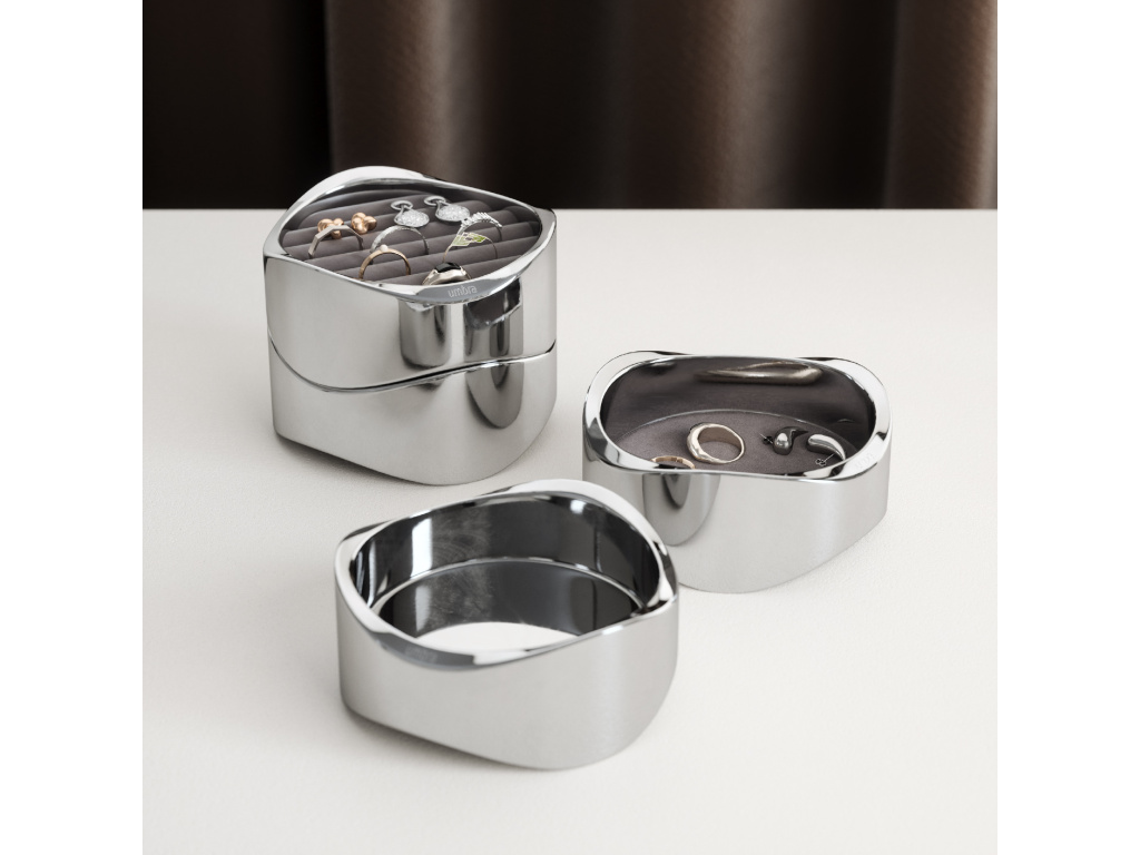 WAVY pojme všechny vaše každodenní šperky – uspořádejte a ochraňte své oblíbené šperky v těchto krásných a kompaktních táckách. Lze je stohovat na sebe nebo použít jako dva samostatné tácky, což umožňuje přizpůsobitelnou organizaci.