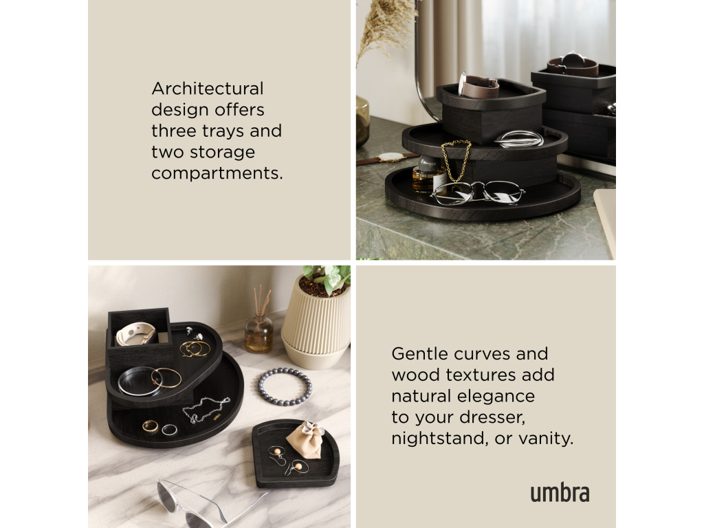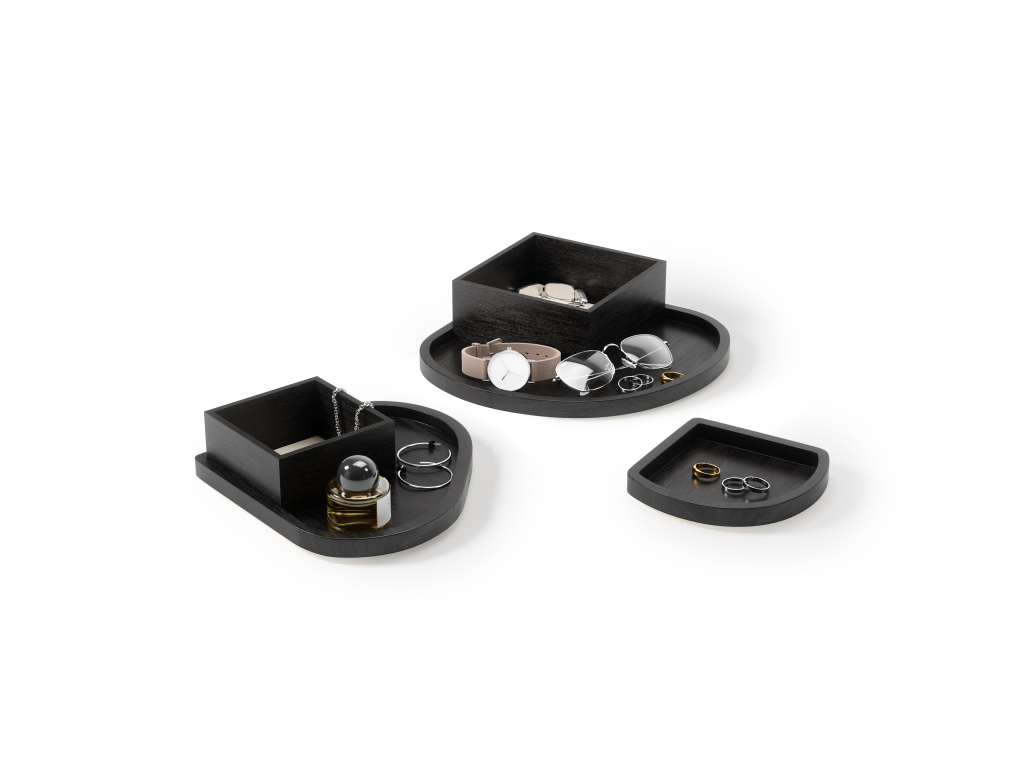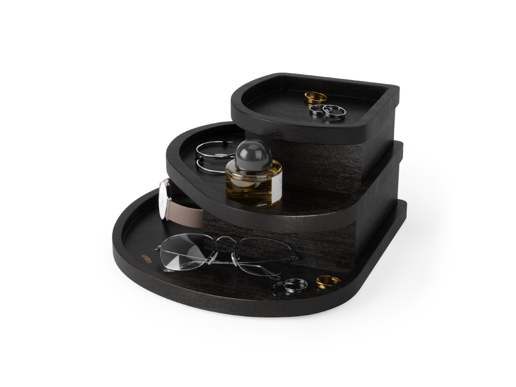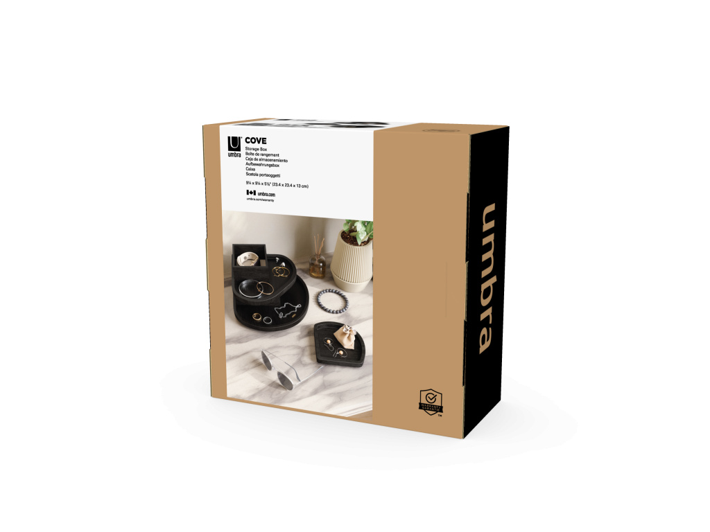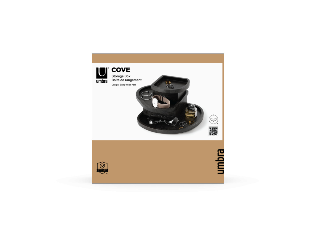 Úložný box Cove je promyšlený způsob, jak uspořádat a ochránit vaše oblíbené kousky. Díky třem úrovním úložného prostoru a skrytým přihrádkám uchovává Cove šperky a doplňky úhledně schované a zároveň snadno dostupné. Měkká lněná podšívka zabraňuje poškrábání a zamotání, zatímco jemné křivky a teplé dřevěné tóny dodávají vaší komodě, nočnímu stolku nebo toaletnímu stolku přirozenou eleganci.