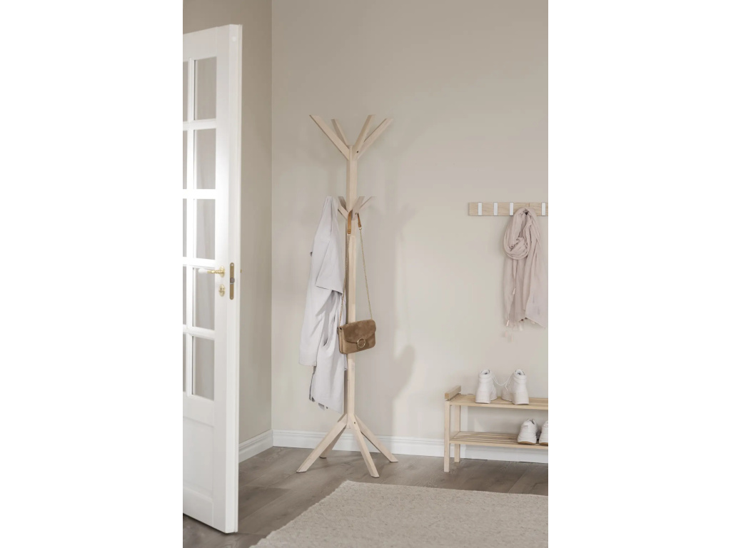 Tento stojací věšák kombinuje skandinávskou jednoduchost s funkčností a dodává prostoru nádech přírodního luxusu.