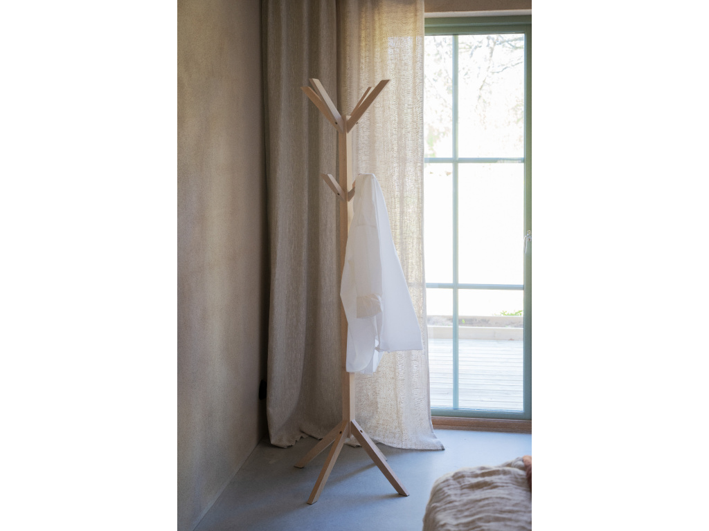 Tento stojací věšák kombinuje skandinávskou jednoduchost s funkčností a dodává prostoru nádech přírodního luxusu.