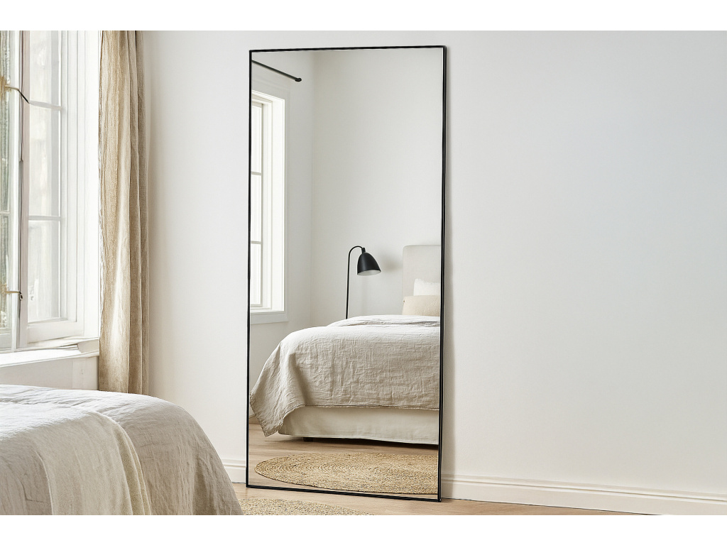 Dalton je elegantní zrcadlo v plné délce s tenkým černým rámem, které působí moderním a minimalistickým dojmem. Díky svým velkorysým rozměrům 100 cm na šířku a 193 cm na výšku vytváří zrcadlo v místnosti pocit prostoru a světla a zároveň slouží jako praktický a dekorativní detail interiéru. Umístěte Dalton do chodby, ložnice nebo obývacího pokoje – kamkoli ho umístíte, stane se stylovým ústředním bodem. Nechte zrcadlo stát se ústřední součástí vašeho domova, kde se funkčnost setkává s formou.