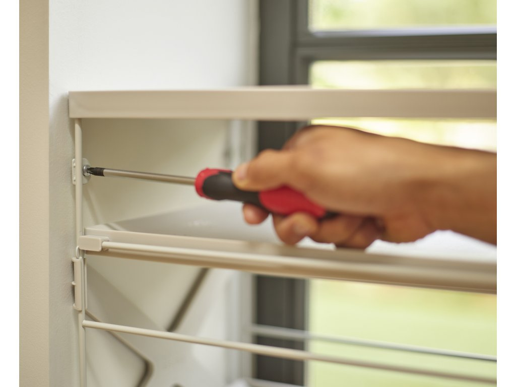 Snadná montáž s kompletními pokyny, které jsou součástí dodávky, a police se snadno přichytí na robustní ocelový rám.