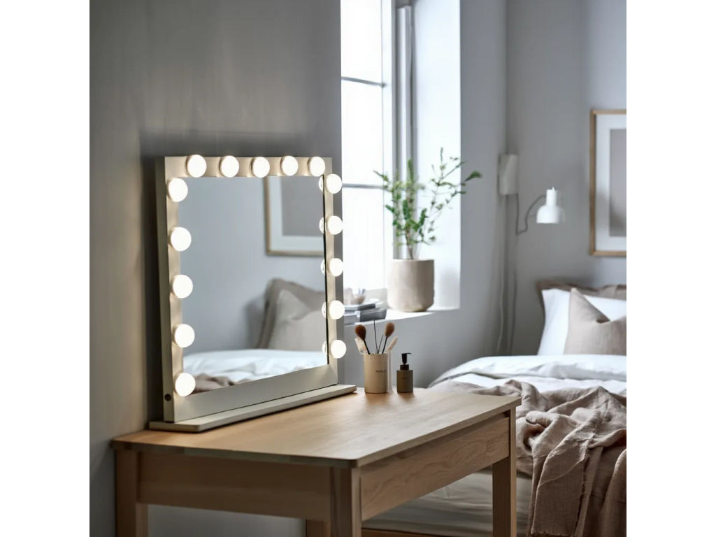 Make-up zrcadlo je obklopené 15 LED žárovkami s nastavením studeného / přirozeného / teplého světla ve třech tónech. Odstíny se dají přizpůsobit vaším osobním požadavkům na make-up.