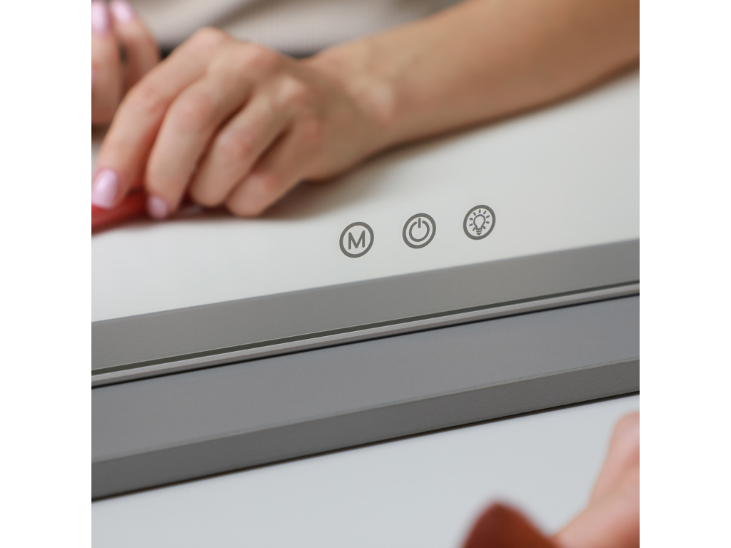 Inteligentní dotykové ovládání je revolučním prvkem tohoto zrcadla určeného pro make-up, který umožňuje uživatelům intuitivně manipulovat s jeho funkcemi přímo přes povrch zrcadla.