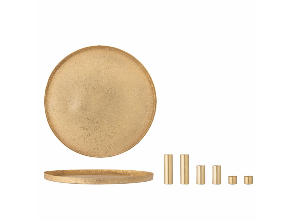 Maxime je všestranný kovový svícen/tác v luxusní zlaté úpravě (Ø 30 × V 8 cm, 7 dílů).