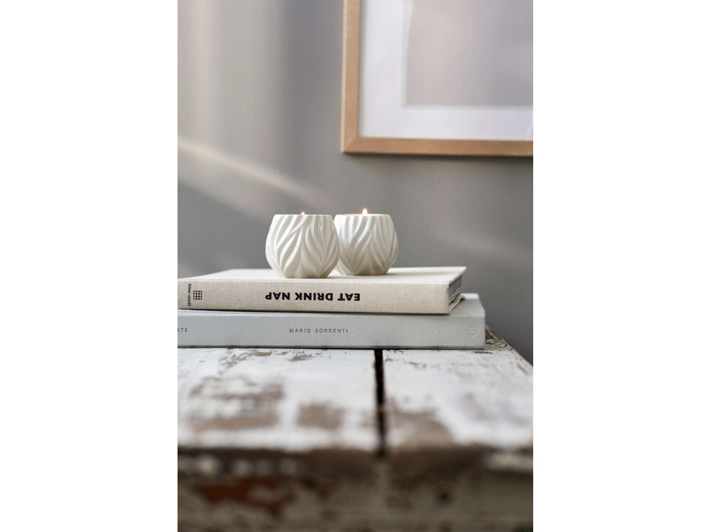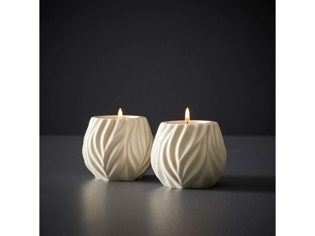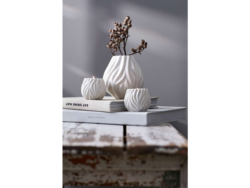 Sada dvou svícnů na čajové svíčky Flame z porcelánu v krásném designu, který ladí s vázami Flame od společnosti Morsø.
