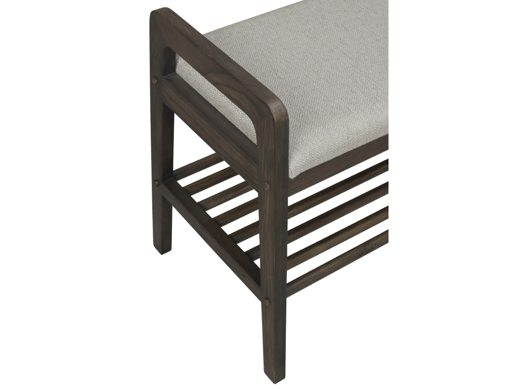 Lavice je vyrobena z masivního dubu s lakovaným povrchem, což zajišťuje vysokou odolnost a dlouhou životnost. Sedák je čalouněný látkou s certifikací OEKO-TEX, což znamená, že byl vyroben s ohledem na zdraví a životní prostředí. Měkká pěnová výplň zaručuje komfort při sezení.
