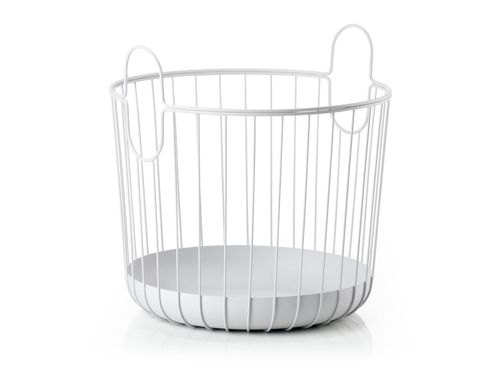 Stohovatelné koše jsou k dispozici v různých barvách a dvou velikostech a jsou vyrobeny z kovu.