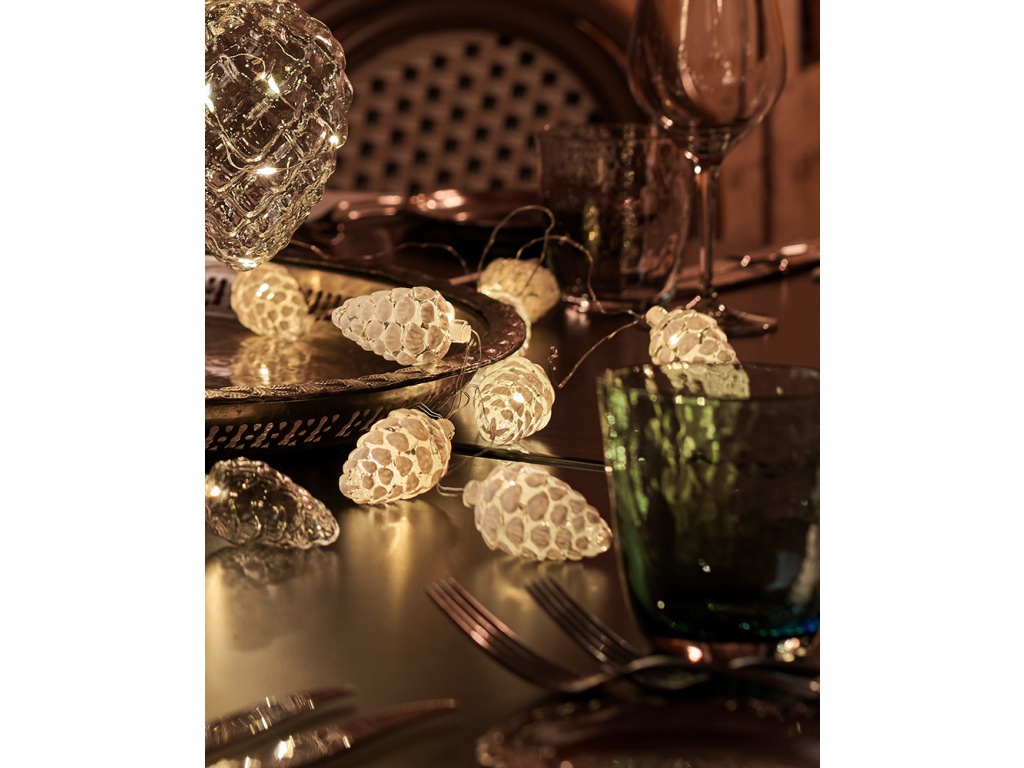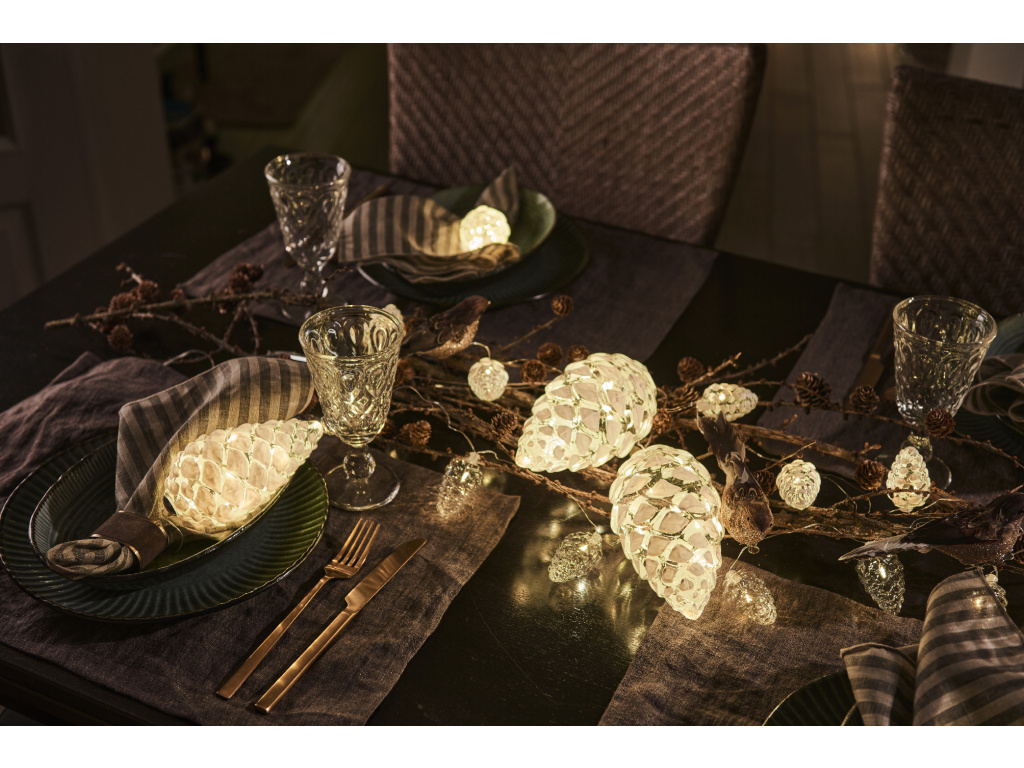 V každé šišce girlandy je LED světlo, které vytváří krásnou teplou barvu v tmavých zimních nocích. Vytvoří u vás doma krásnou vánoční atmosféru.