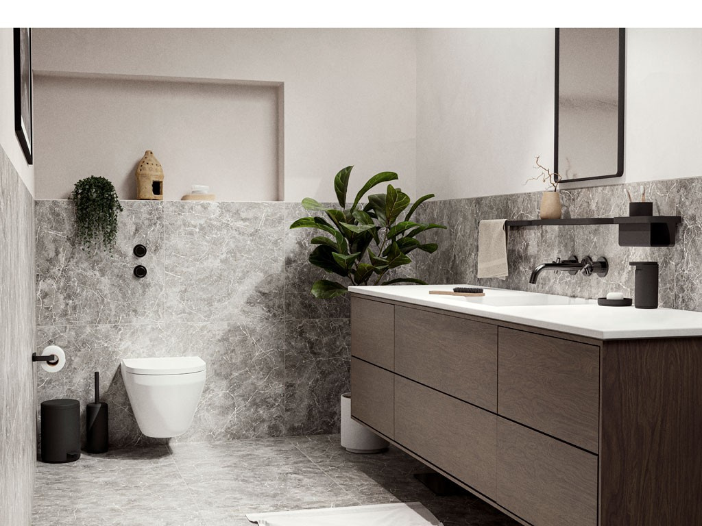 S kolekci Rim můžete vyzdobit koupelnu kompletně se vším od zrcadel a polic až po stěrky a dávkovače mýdla.