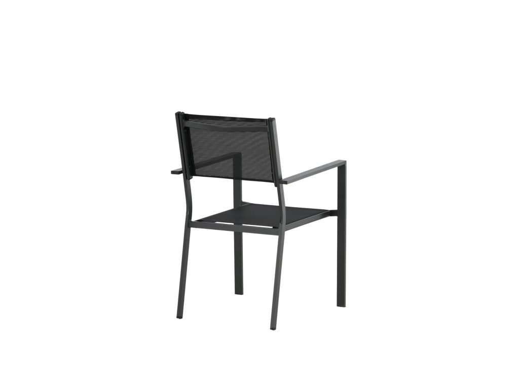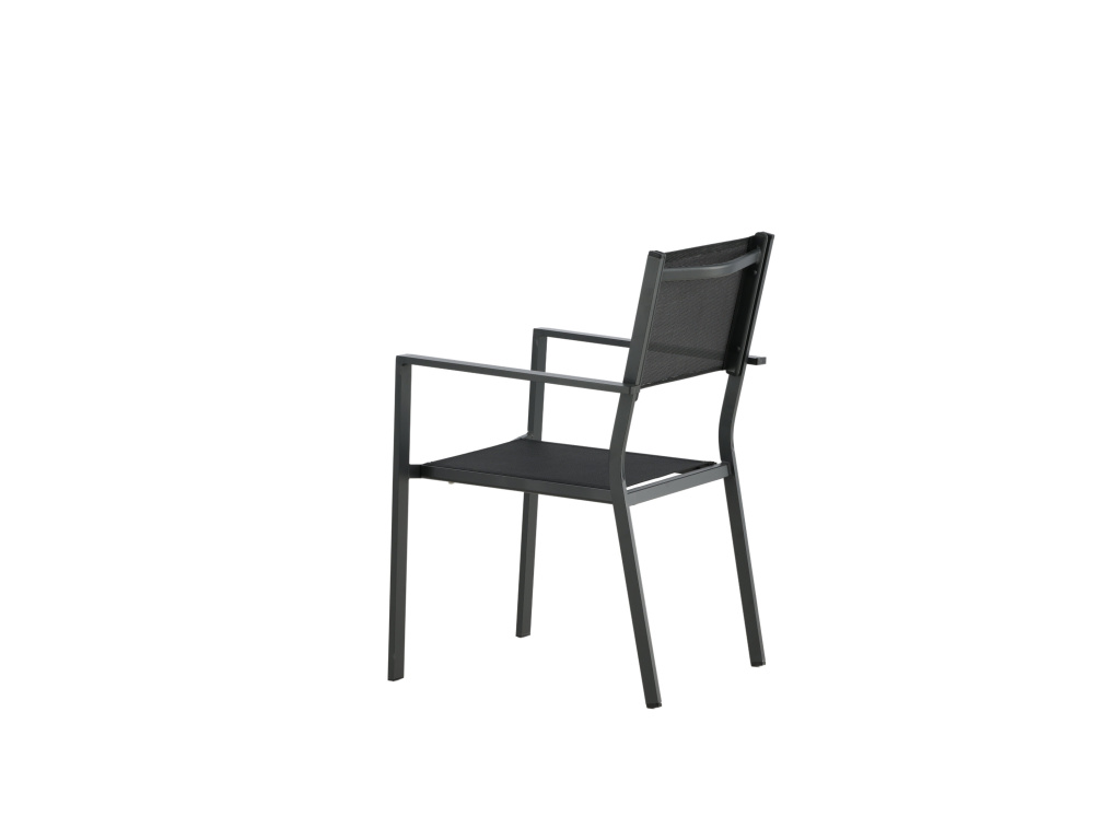 Jeho černá hliníková konstrukce a měkký sedák z černého textilu vám dávají praktickou jídelní židli, která dlouho vydrží.