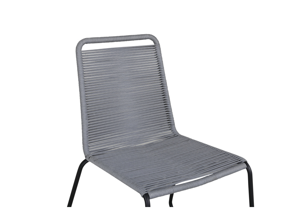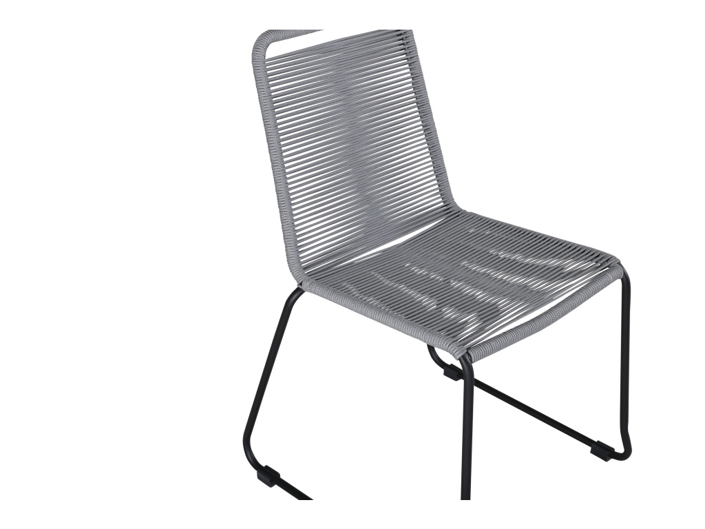 Precizní jídelní židle z černé hliníkové konstrukce se sedákem z šedého tkaného lana - mnoho lidí propadne vkusu a snadno se sladí s jiným nábytkem.