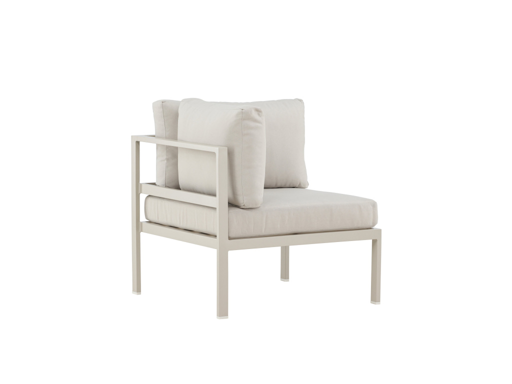 Polštáře jsou potaženy olefinem, trvanlivou tkaninou odolnou vůči povětrnostním vlivům v odpovídajícím béžovém odstínu, pro větší pohodlí a harmonický vzhled.