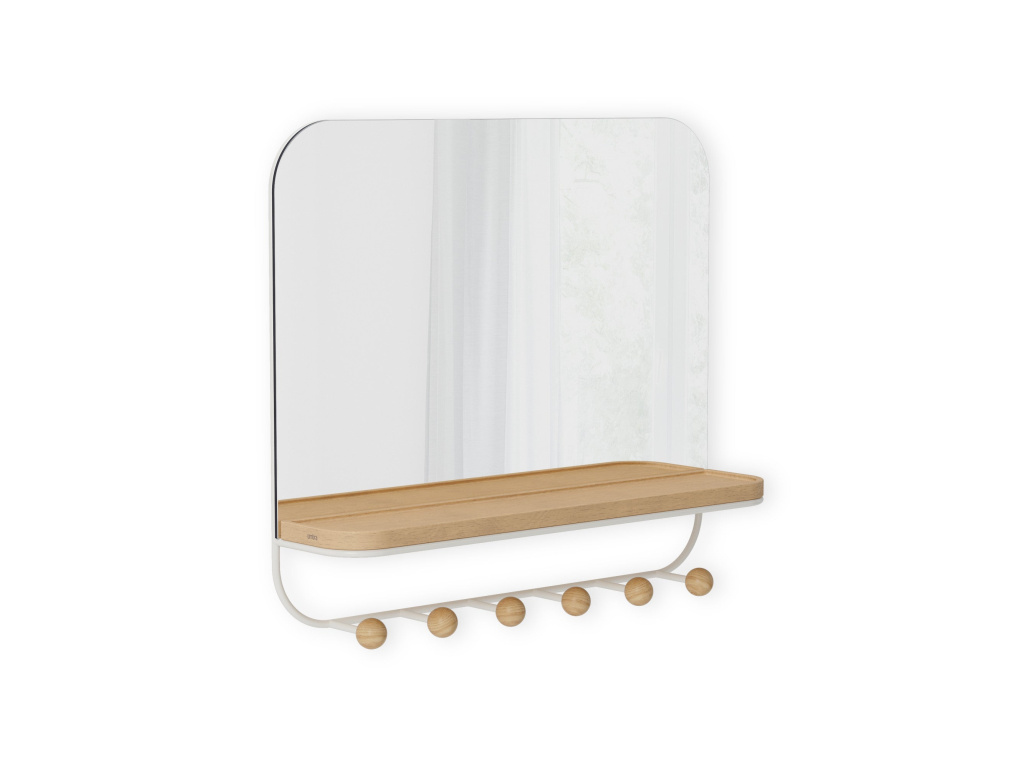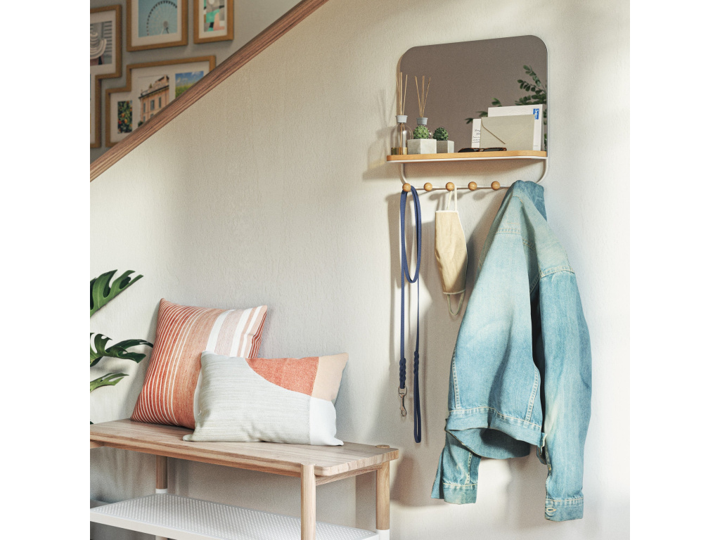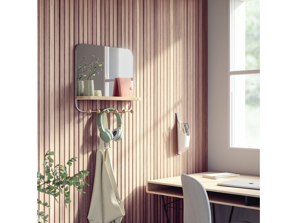 Nástěnné zrcadlo s dřevěnými háčky Umbra Estique Mirror | přírodní