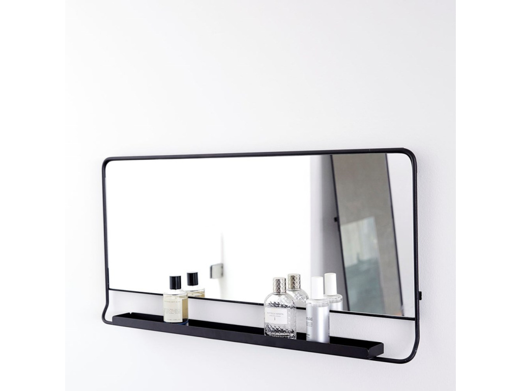 Zrcadlo s poličkou od House Doctor. Chic je krásné zrcadlo z černě lakovaného kovu s malou, praktickou poličkou ve spodní části s prostorem pro drobnosti.